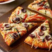 Our pizza is medium size with tomato sauce, cheese, and any toppings you like. At the moment we only have vegetarian or pepperoni.