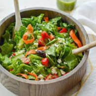 Our salad is filled with garden-fresh vegetables and covered in a very good dressing that's homemade.