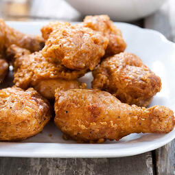 Our fried chicken is made with a mix her herbs and spices giving it a wonderful blend of flavor. Then it's cooked in hot oil to a nice golden brown with a very good crispy bite.